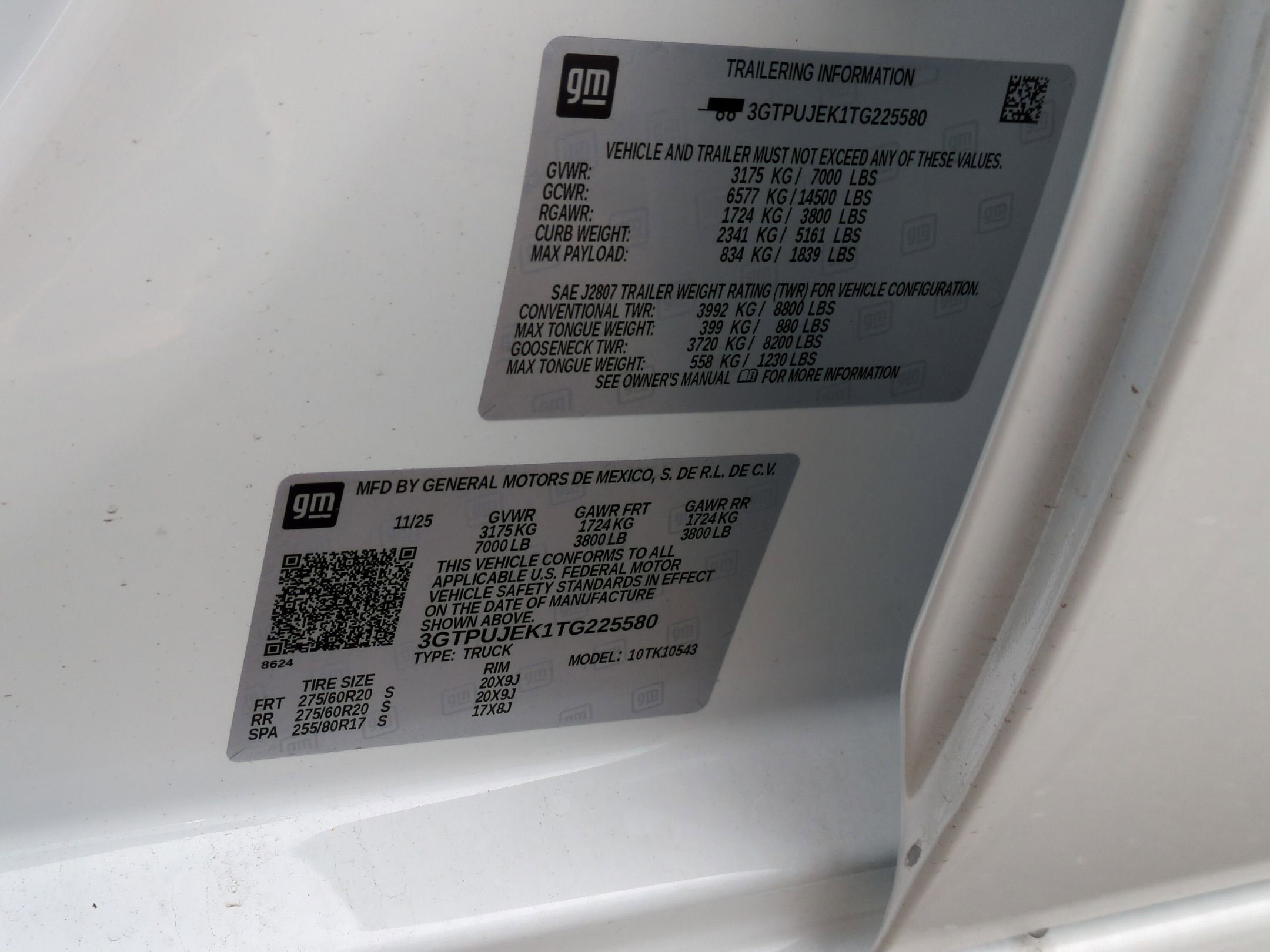 - 20" 275/60R20 all-season, blackwall tires