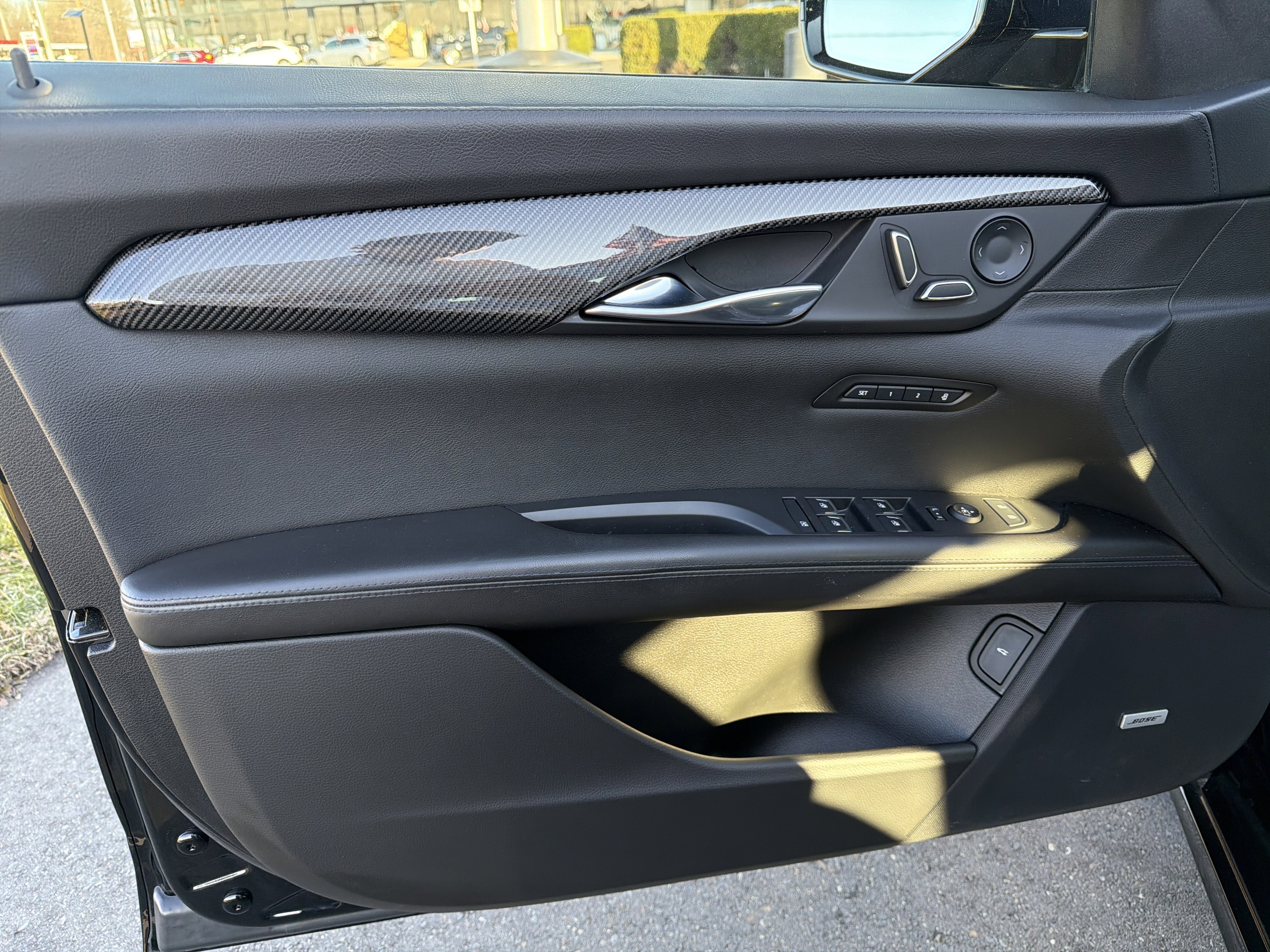 - JET BLACK LEATHER SEATING SURFACES WITH CHEVRON PERFORATED INSERTS (With Fine Twill Weave Carbon Fiber trim/Ravenwood trim.
