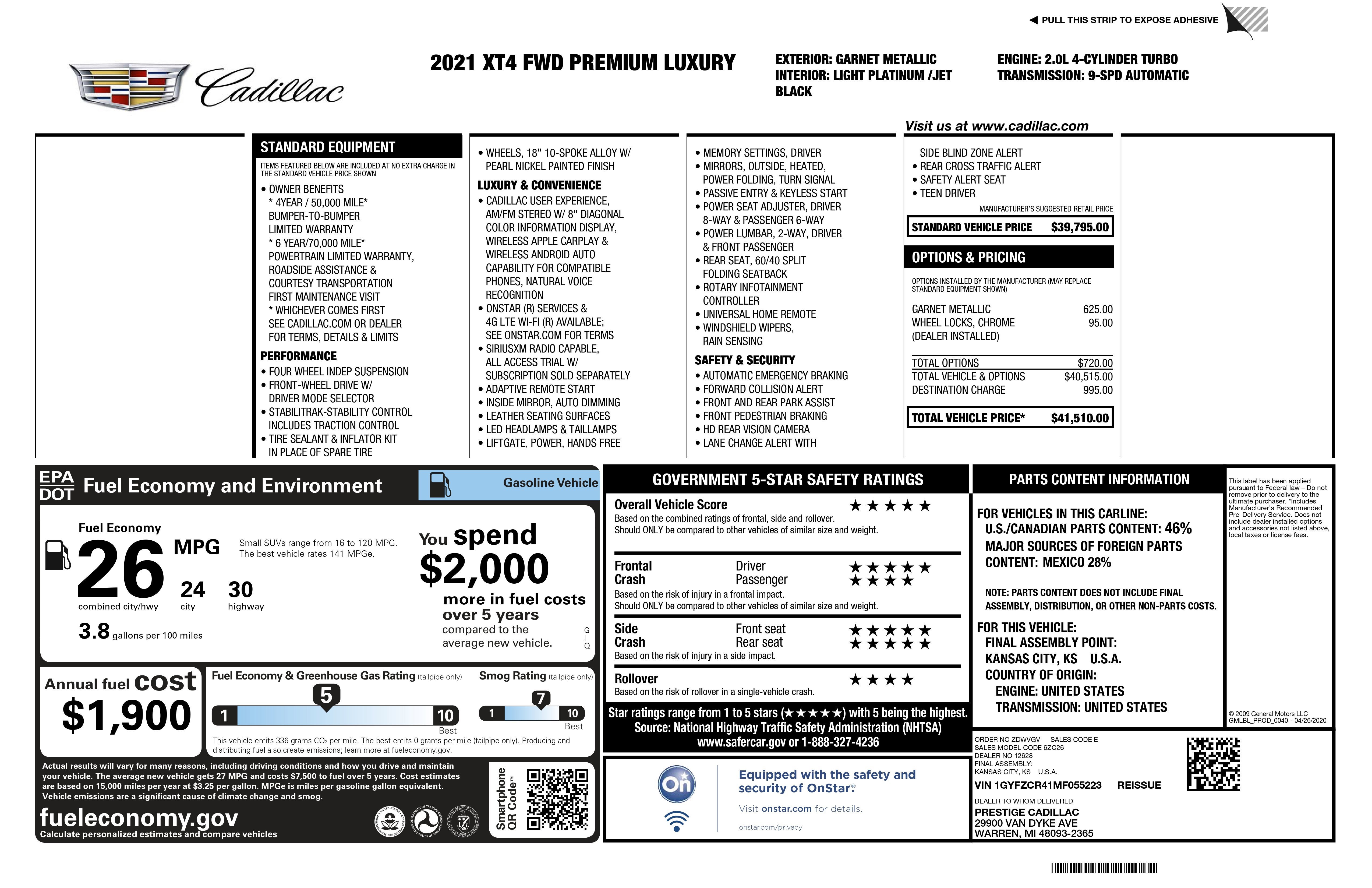 2021 Cadillac XT4 Premium Luxury