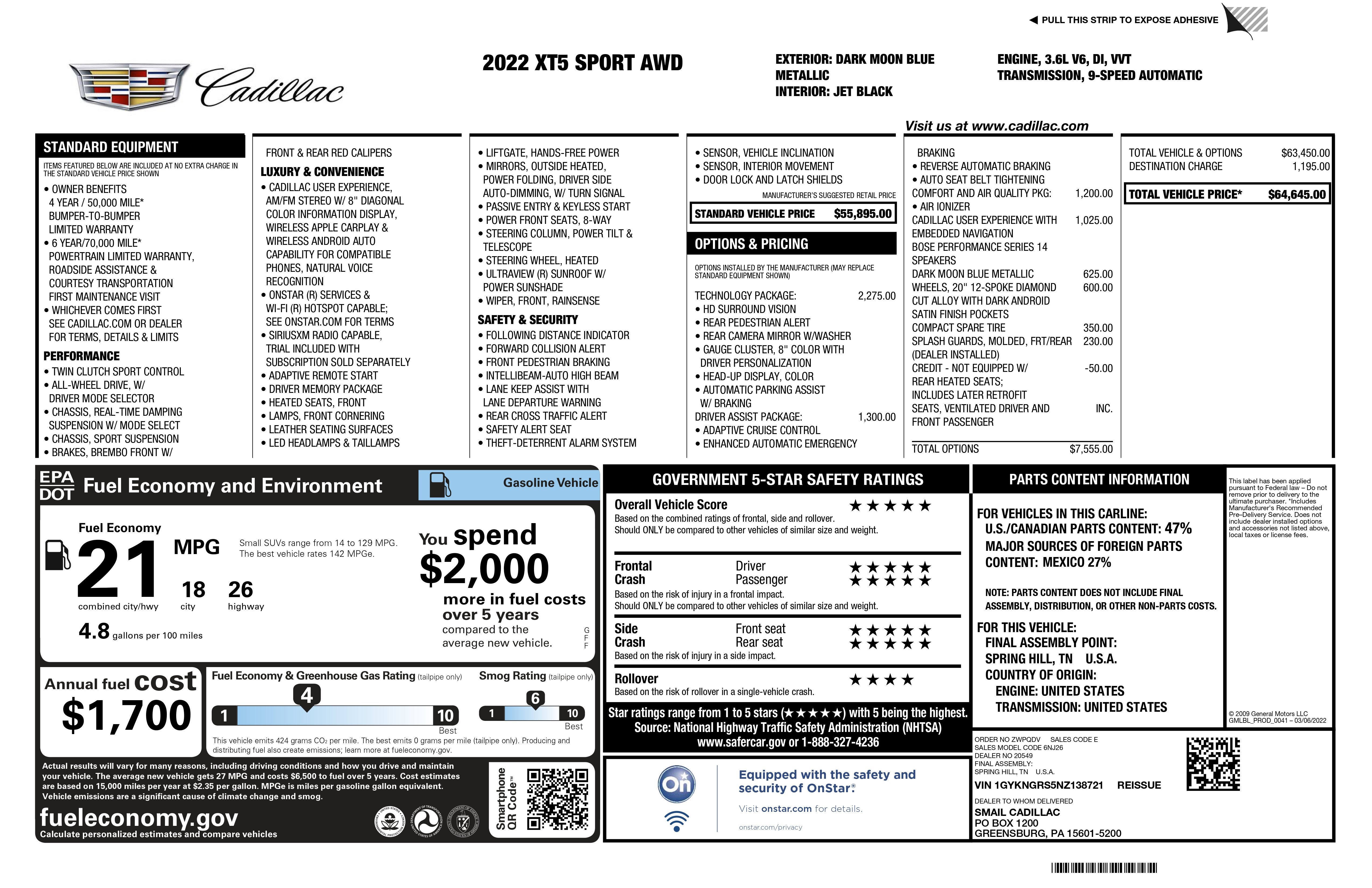 2022 Cadillac XT5 Sport