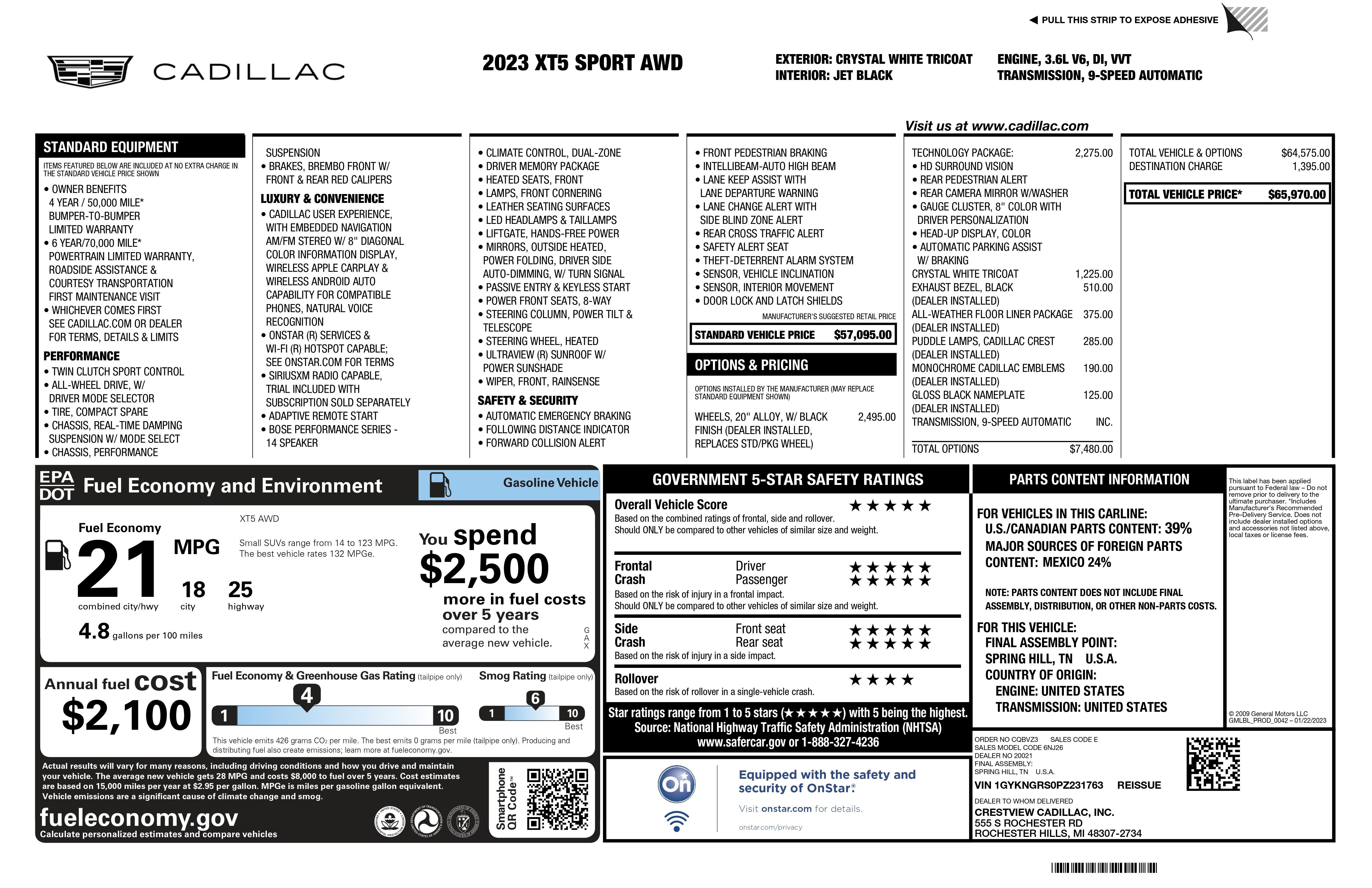 CarBravo 2023 Cadillac XT5 Sport
